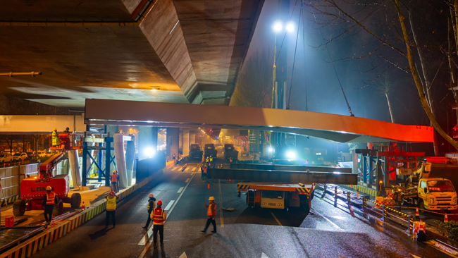 濟(jì)南百花公園過街天橋創(chuàng)新應(yīng)用低凈空吊裝技術(shù)實(shí)現(xiàn)精準(zhǔn)吊裝